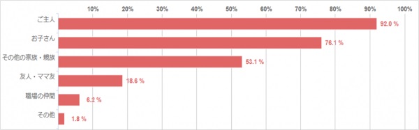 「ご主人」と一緒に楽しむという方は92.0%、「お子さん」と楽しむという方は76.1%でした。焼肉はご家族と一緒に楽しむというママさんが多い結果になりました。