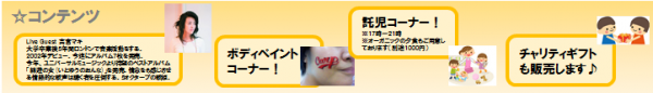 ※別途、お酒や食事、チャリティギフトの販売もしております。小銭の準備のご協力をよろしくお願いいたします。