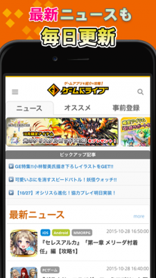 スマートフォン向けゲームを中心に、事前登録中のタイトルから新作のリリース情報、紹介、攻略情報をいち早くお届け!