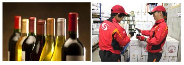 具体的には、(1)ワイナリーからの国際輸送手配、(2)輸入申告や蔵入承認申請など通関手続きの代行、(3)専門スタッフによる荷受け検品、(4)定温・定湿での保管、(5)ラベル貼付やセット詰め、包装などの流通加工、(6)専用車両での配送といった物流サービスを提供します。