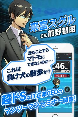 ○ストーリー/自らを鍛えるため、日々走っている。彼が主催する「来宮サクセスセミナー」のプログラムの一環としてジョギングが組み込まれており、ユーザーはその受講者として参加することに。