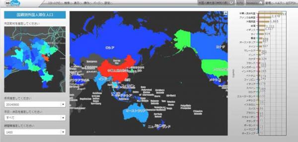 この度ウイングアークは、ドコモ・インサイトマーケティングが提供する「モバイル空間統計訪日外国人データ」を、「3rd Party Data Gallery for MotionBoard」のラインナップの一つとして月額提供するとともに、「3rd Party Data Gallery for MotionBoard インバウンドマーケティングソリューションパック」にて提供します。導入したその日から分析・可視化を実現するテンプレートを利用することで、ユーザーは分析環境を構築する必要がなく、導入した日から日本全国(携帯電話サービスエリア内)における訪日外国人の人口分布を把握することが可能になります。
