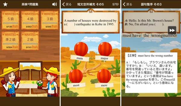 「英検」2級・準2級・3級・4級・5級レベルの筆記試験問題を、ゲーム形式で楽しみながら解くことができます。『英検 英単語』と合わせて学習することで、「英検」の筆記試験に必要な力を身につけることができます。
