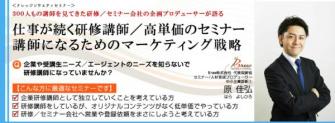 講師を名乗っているが、高額なフィーを貰える企業研修講師は、一握りです。講師として活躍するためには、自身の講義方法や内容も重要なのですが、自身をどう売り込み、PRしていくかも重要です。しかし、今までの講師向けセミナーでは、プレゼンテーションやコンテンツ作りに関する内容が中心でした。また、自身の成功体験を語ったセミナーがほぼ中心です。本セミナーは、10年以上、研修会社のプロデューサーとして多くの講師を見てきた立場から、営業やマーケティングについてお伝えするセミナーです。