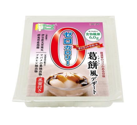 こんにゃくマンナンと寒天を独自の製造技術で配合した、0カロリーの葛餅風デザートです。
