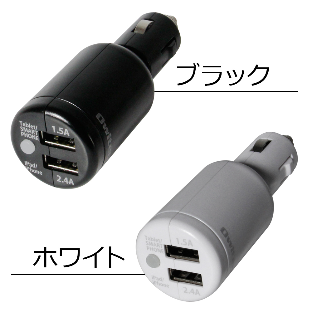 【2台同時に急速充電に対応の3.9A(2.4A+1.5A)のシガーソケット充電器】