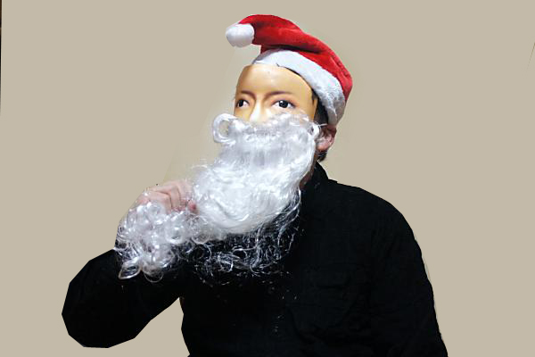 クリスマス用に、このお面はおでこから鼻下までのモノで、ひげと帽子がセット