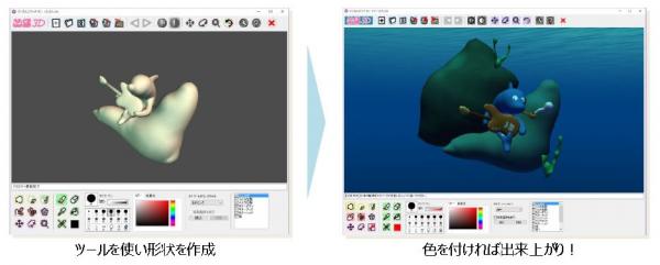 さらに出来上がったデータは3Dプリント用データとしても出力可能で、3Dプリンターを利用してお子様が書いたイラストを、実際に手にとってふれることが可能です。これからの時期、クリスマスプレゼントとしても最適なグラフィックソフトです。