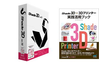 入門者向け3D作成ソフト「Shade 3D Basic ver.15」に、Shade 3Dの使い方やノウハウを凝縮したガイドブック「Shade 3D+3Dプリンター 実践活用ブック(定価:2,570円(税込) )」(米谷 芳彦著、マイナビ刊)と、約300ページの詳細なマニュアルをセットにしたお得なセットです。