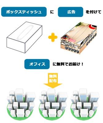 ・通常有料のBOXティッシュを無料配布する事で、消費者に喜ばれる広告!