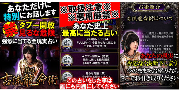 【過去】【現在】【未来】あなたの現実の全てが今日ここで明らかになります。取扱い注意・悪用厳禁。占術界の重鎮すら見抜けなかった現実をズバズバと当て尽くします。