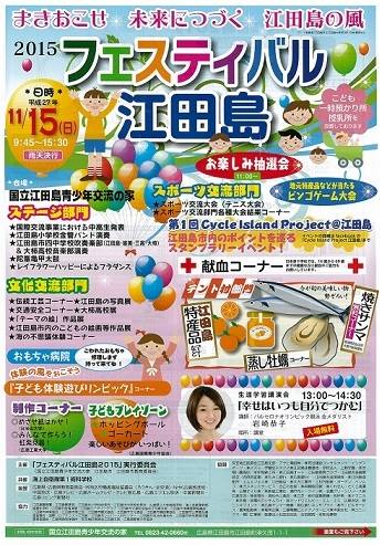 尚、平成27年11月15日は江田島青少年交流の家で「フェスティバル江田島2015」も開催され、同時イベントとして実施します。