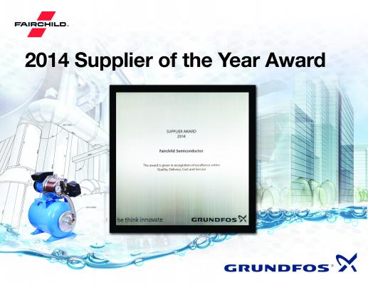 カリフォルニア州サンノゼ - 2015年11月11日 --- 高性能パワー半導体ソリューションのグローバルサプライヤーであるFairchild(NASDAQ:FCS)https://info.fairchildsemi.com/PR_FY15M11-PR-Japan-Grundfos-1-FCS-Homepage.html ( 以下、フェアチャイルドと表記)は、世界最大手のポンプメーカーで年間約 1800万台の住宅用、業務用ならびに工業用ポンプを生産している Grundfos 社(本社:デンマーク)より 2014 年の「Supplier of the Year (年間最優秀サプライヤー賞)」を受賞したと本日発表しました。