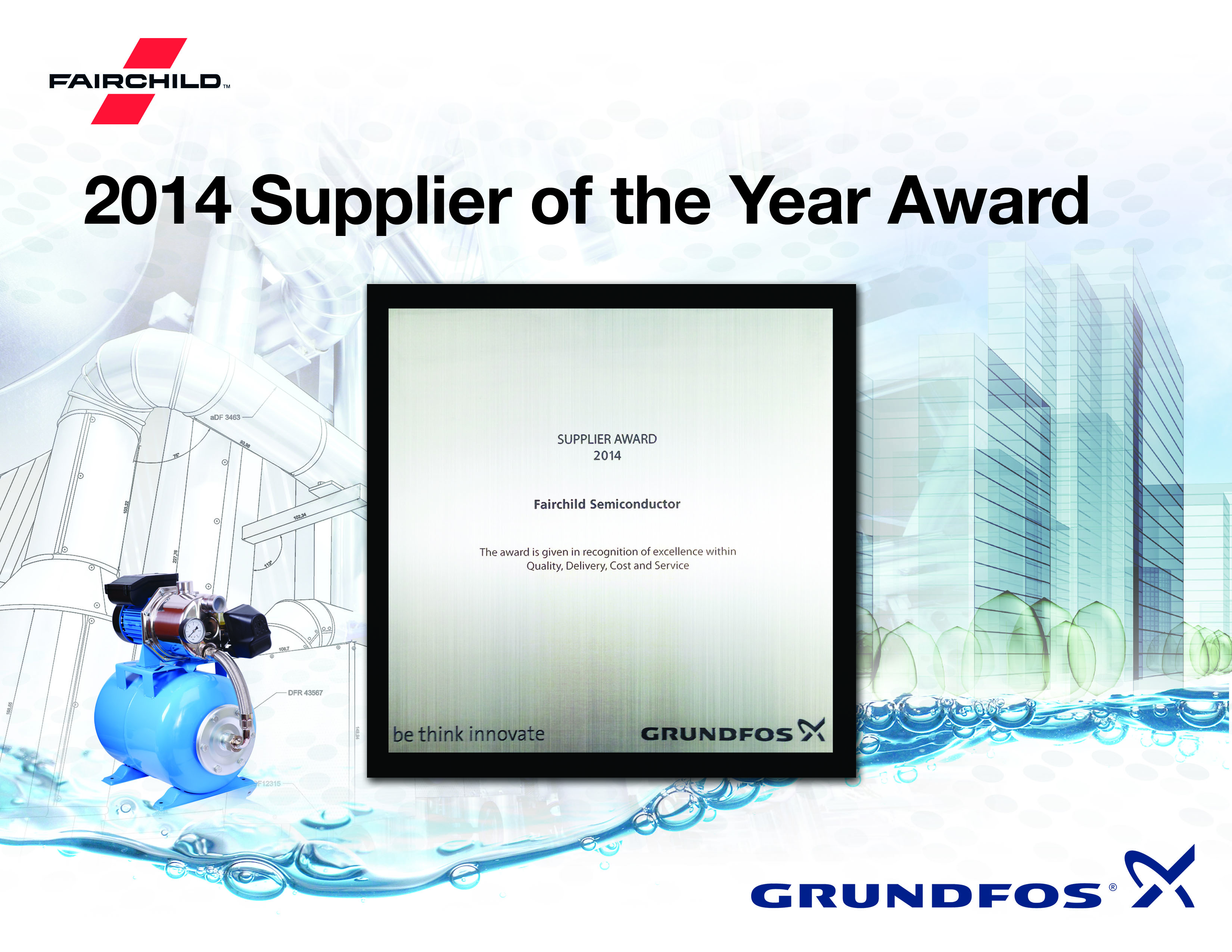 フェアチャイルドはその品質、納期厳守、革新性、コラボレーションに対する取り組みが認められ、Grundfos社における約 3,500社のサプライヤーの中からこの賞に選出されました。フェアチャイルドは 2009 年にもこの賞を受賞しており、再受賞を達成した2社目の企業となりました。
