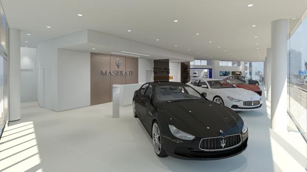 ショールームの延床面積は約240m2(72坪)。店内には厳選されたマセラティ認定中古車車両が常時4台展示されます。ショールームのデザインは、新車販売拠点と同クオリティの最新のマセラティCIを導入。洗練された白とブルーを基調に、ラグジュアリースポーツブランドにふさわしいエレガントな雰囲気を提供。大きなガラス張りのスペースが、明るい開放感とくつろぎを演出します。