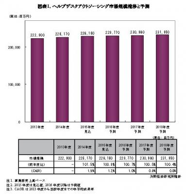 ◆2018年度の国内ヘルプデスクアウトソーシング市場を、231,950百万円と予測