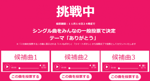 TwitterとFacebookのアカウントにより一般投票が可能です。