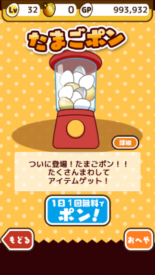 「たまごポン」は1日1回限定で無料(GPや金のたまごの消費なし)で利用することもできます!