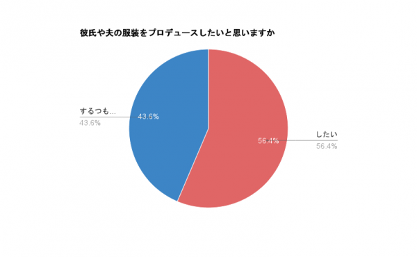 「彼氏や夫の服装をプロデュースしたいと思いますか」という質問には、56.4%が「したい」と前向きな姿勢を見せています。なかには、「付き合った男性は全員私の好みに変えてきた」「別れたら元のファッションに戻っていた」という意見もありました。