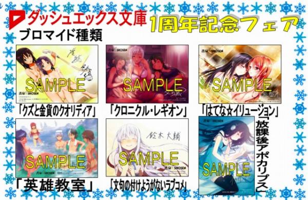 ダッシュエックス文庫の新刊・既刊を問わず、ご購入のお客様へ1冊につき1枚「ブロマイドカード」を、