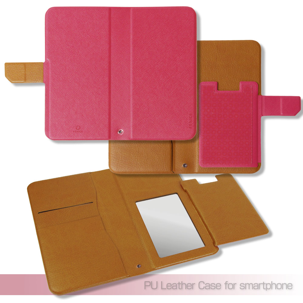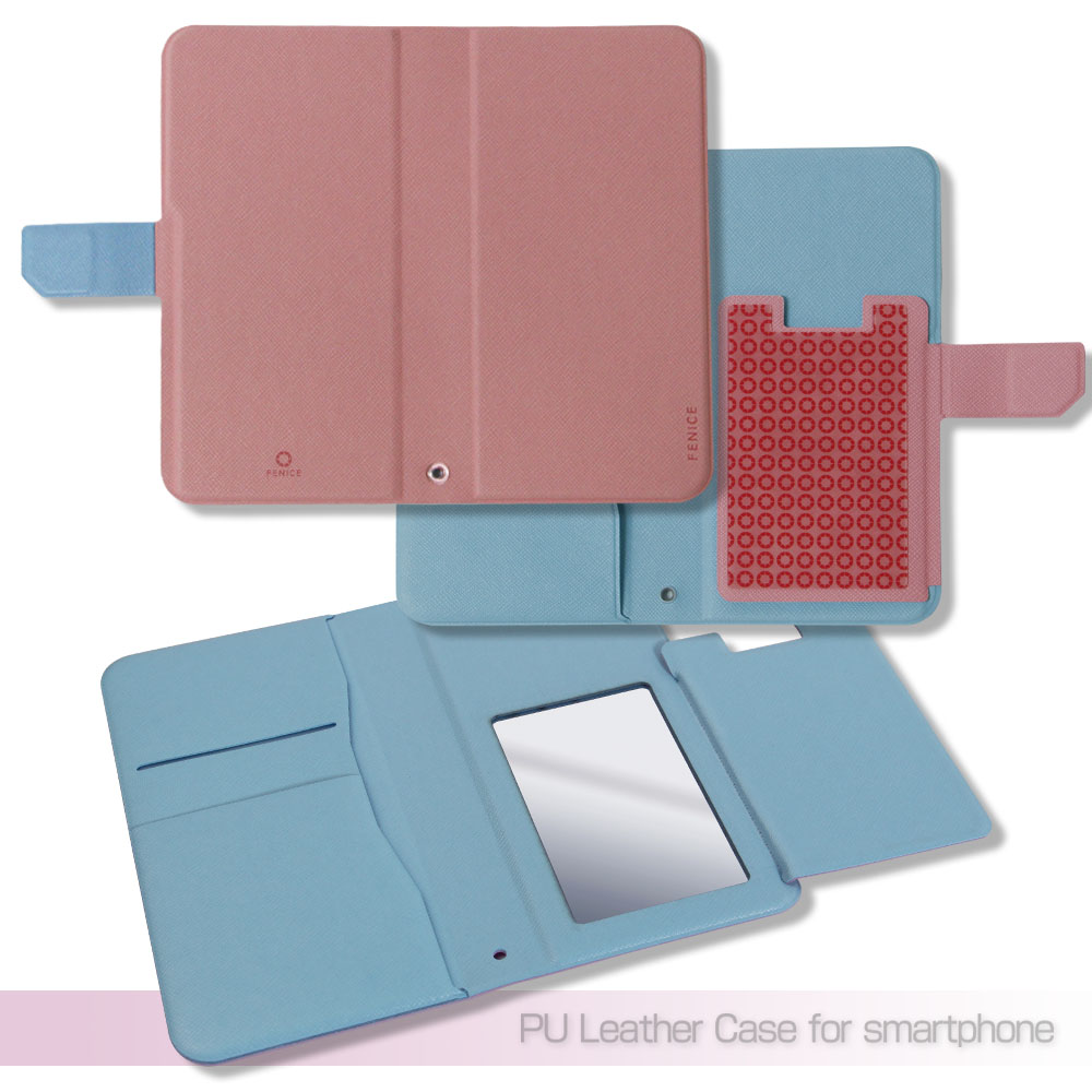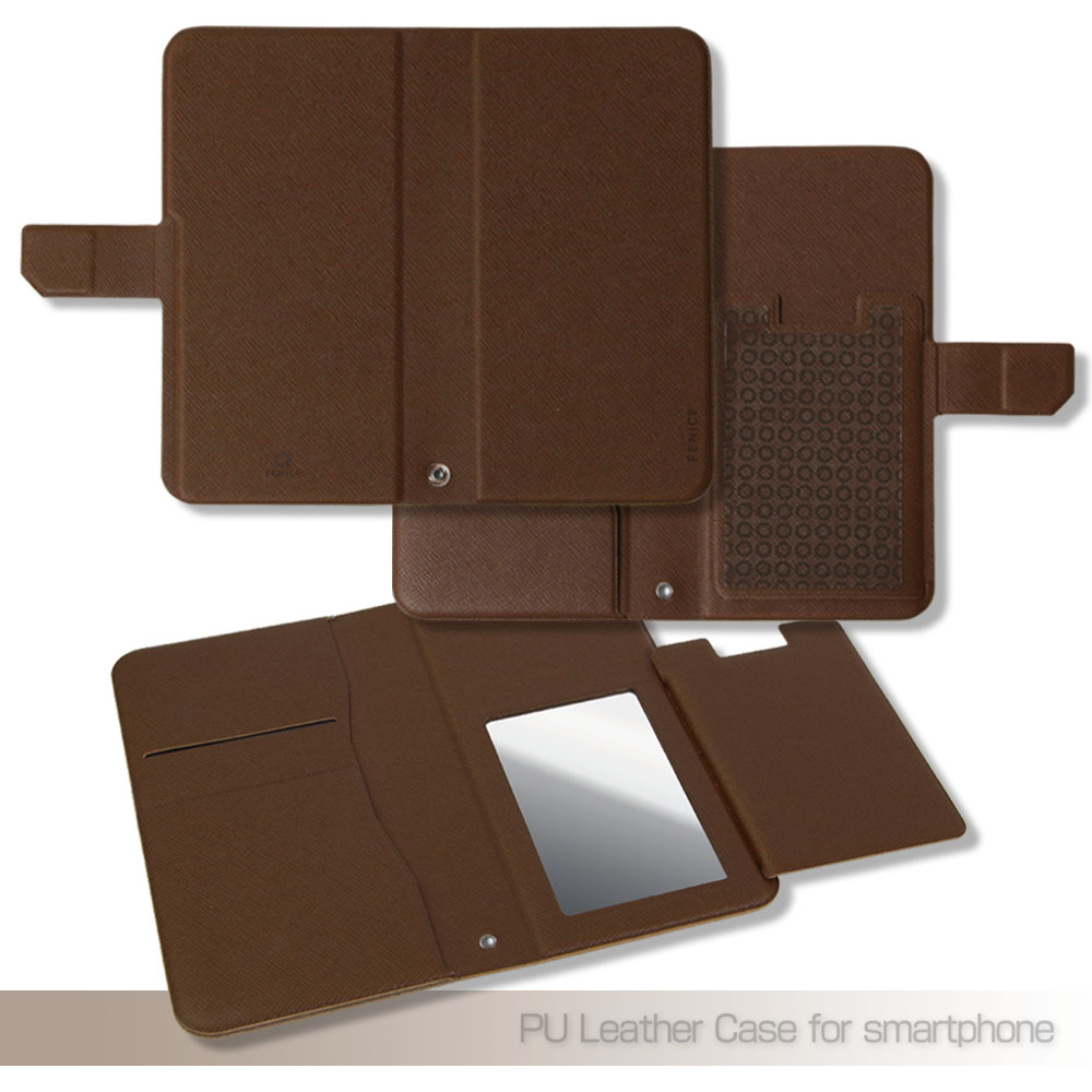 ソフトなレザー調の手帳型ケースですので手に馴染みやすく、落とした時の衝撃も軽減でき、背面や側面に加えて液晶画面も保護します。フタ部分をうまく利用することで、電車内や外出先など近くに人がいる場合でも、プライバシーを守ることができます。ケースの留め具はマグネット式になっていますので開け閉めが簡単にでき、ストラップホールも付いています。