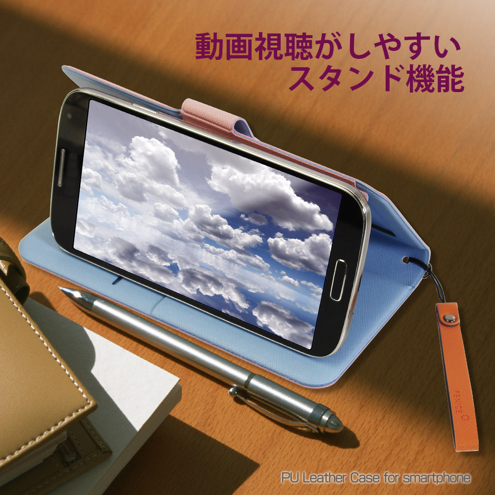 スマートフォンの垣根をこえて使用できる手帳型のケースとなっており、XperiaシリーズやGalaxyシリーズなど、5.2インチまでのスマートフォン全機種に対応しています。