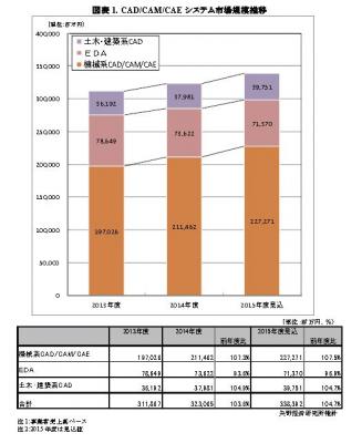 ◆2015年度の国内CAD/CAM/CAEシステム市場規模は3,384億円の見込み、引き続き円安と公共事業がけん引