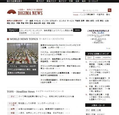 なかなか日本に入ってこないような現地ビジネスニュースを配信し、海外進出のヒントにして欲しいとの想いから立ち上げた「Digima~出島~」のニュースサイトは、この11月に大幅なリニューアルをいたしました。