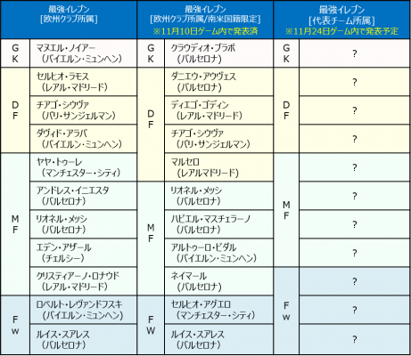 (1)「最強イレブン[欧州クラブ所属]」