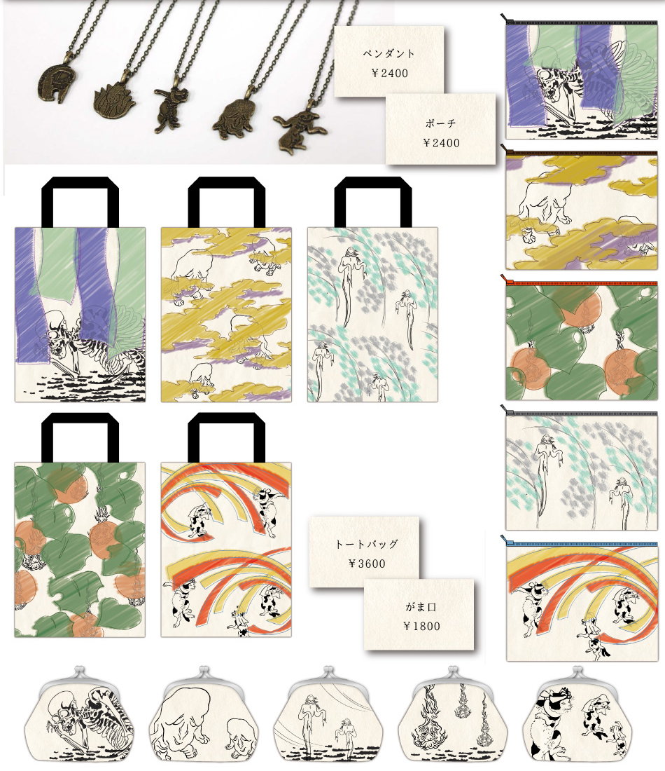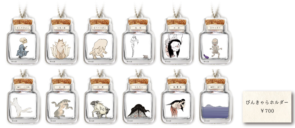 主な商品ラインナップはポーチ、トートバッグ、ペンダント、切手型イヤホンジャック、びんきゃらホルダーなど、モチーフとなる妖怪は“ぬらりひょん”、“ぬっぺっぽう”、“おとろし”、“ひょうすべ”、“がしゃどくろ”、“うぶめ”などの種類を予定。