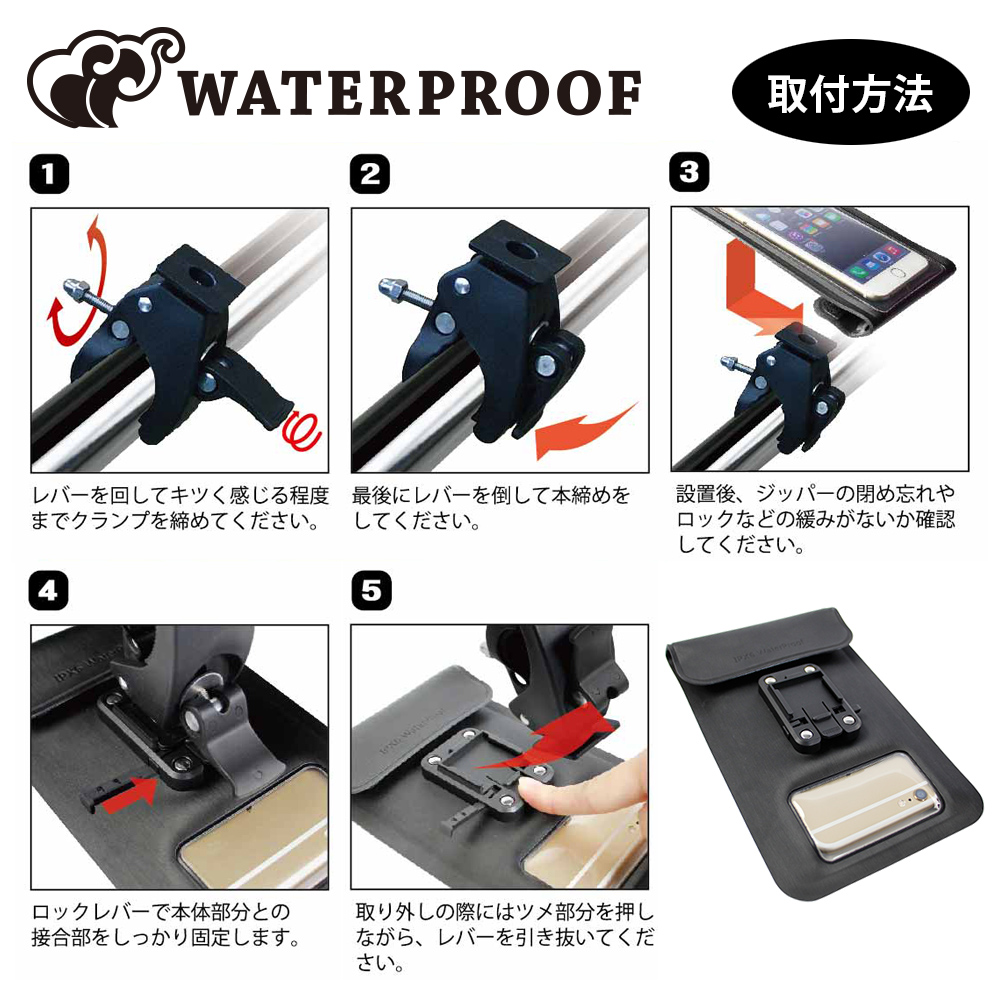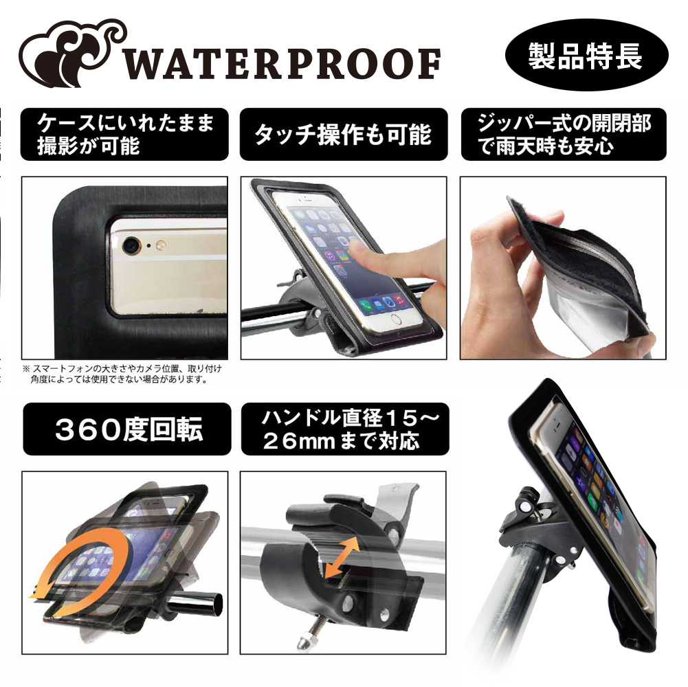 サイクリング中に急な雨が降ってきてもスマホが濡れてしまう心配がありません。