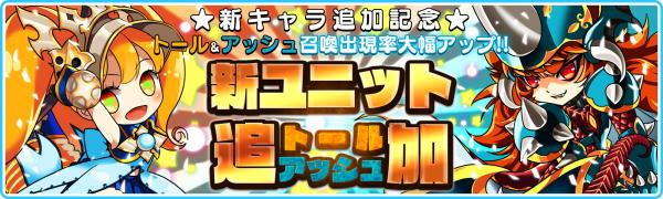 新ユニットの追加を記念し、本日から11月23日12時までユニット召喚ガチャから「トール」と「アッシュ」の出現確率を大幅にアップする「新ユニット出現率アップキャンペーン」を実施いたします。