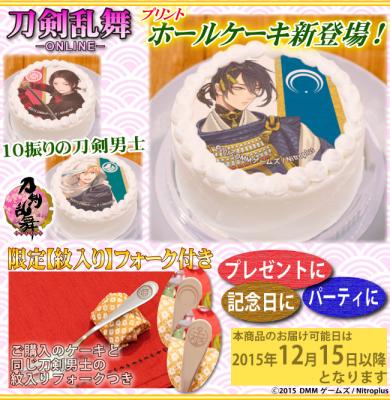 「プリロール」を運営する株式会社栄通(本社:東京都八王子市)は、DMM ゲームズ×ニトロプラスの大人気オンラインゲーム『刀剣乱舞-ONLINE-』のプリントホールケーキ第1弾を2015年11月19日(木)に発売いたしました。