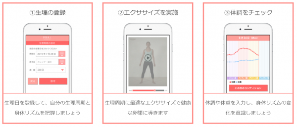 海外でも大好評の大内雅弘氏のワークショップ「卵巣呼吸法(ヒーリング・ラブ)」は1日15分のエクササイズでホルモンバランスを整えるメソッドです。このメソッドを元に、もっと手軽にどこでも誰でも行えるように開発したのが卵巣美人エクササイズです。1日3~5分のわかりやすい動画を見ながら、呼吸や体を動かすだけで、生理周期という女性のコンディションに合わせて行うことで卵巣を健やかな状態へと導いてくれます。