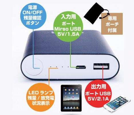 ・スマートフォン充電回数約7回 またはタブレット充電回数約2回 (当社試験結果に基づく目安)