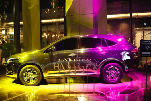 全面鏡張りのコンセプトカー“ミラーハリアー”も合わせて展示し、車体に写り込ませることで、「HARRIER」の文字が浮き上がるトリックアートも披露しました。