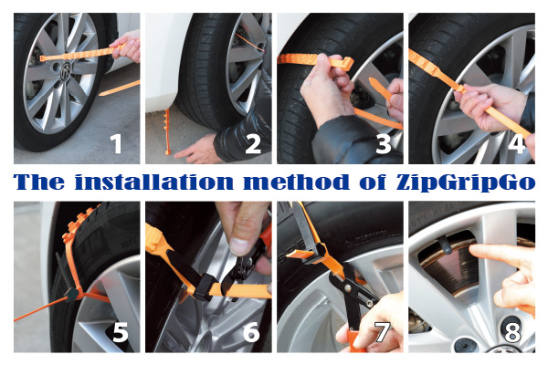 「ZipGripGo」は、タイヤに巻くだけ。