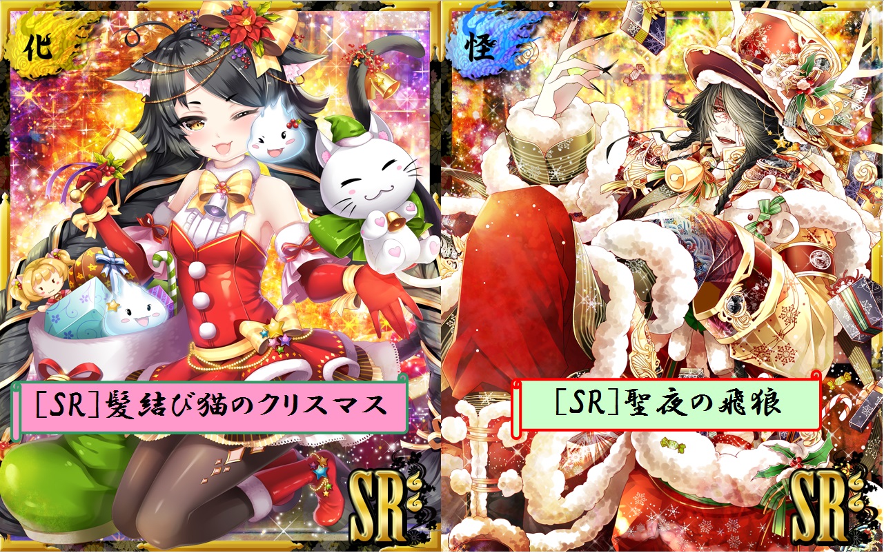 (2)撃破ポイント中間ランキング上位報酬 →[SRカード] 髪結び猫のクリスマス (一例)