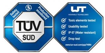 手首に着用するフィットネストラッカーが規定の基準に基づき試験に合格すると、テュフズードの認証マークによってそのことが証明されます。ただしこの認証マークは、プロフェッショナルな使用を目的としない、手首着用のウェアラブル製品のみに発行されるものです。医学や治療を目的とする製品やそれらに関連するアプリは、試験の対象ではありません。規定の基準は、EN60950-1:/A2、試験モジュールID55177、EN60529、EN60065など、数多くの試験基準に基づいて開発されました。