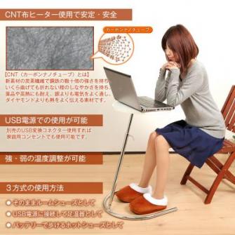 そのまま履いてもOK。電源につないで足温器として使用も可能です。