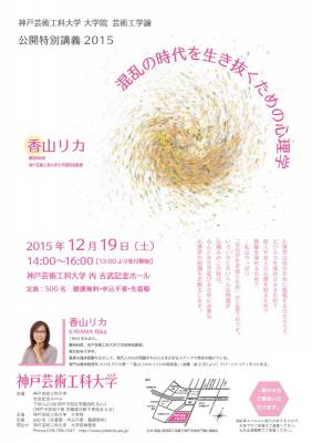 学校法人谷岡学園 神戸芸術工科大学(神戸市西区、学長・齊木崇人)大学院では、本学吉武記念ホールにおいて、大学院芸術工学論 公開特別講義2015『混乱の時代を生き抜くための心理学』(講師・香山リカ※本学大学院特別教授)を開催いたします。