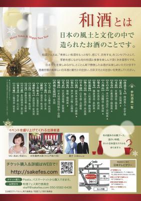 和酒フェス実行委員会は、日テレマルシェ実行委員会と共同で、『第2回和酒フェス東京@日テレ』を、東京都港区「日本テレビ 日テレタワー大屋根広場」にて12月19日(土)に開催いたします。