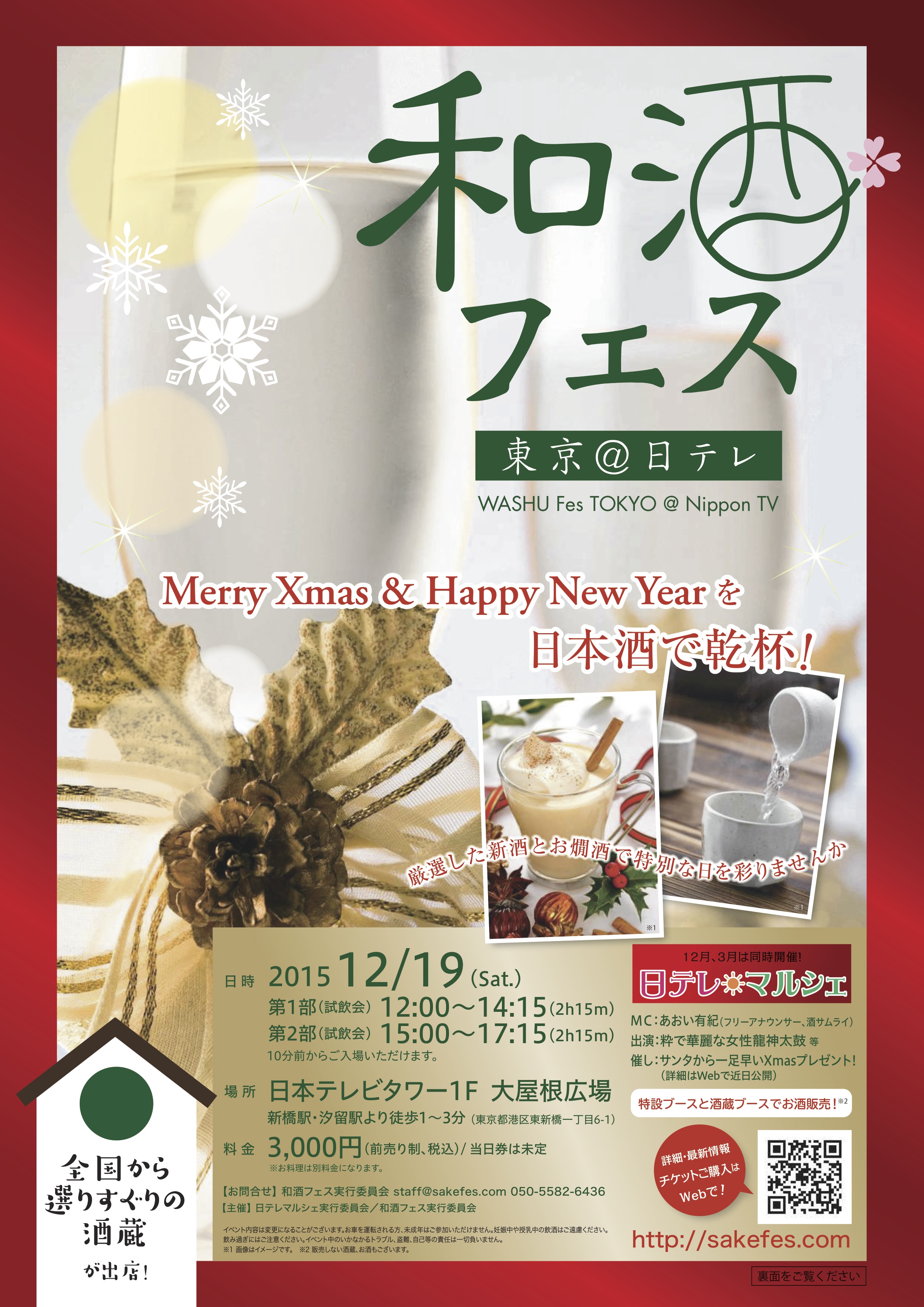 和酒フェス実行委員会は、日テレマルシェ実行委員会と共同で、『第2回和酒フェス東京@日テレ』を、東京都港区「日本テレビ 日テレタワー大屋根広場」にて12月19日(土)に開催いたします。