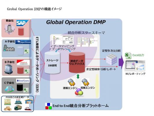「Global Operation DMP」は、管理会計のための連結エンジンを備える統合分析プラットフォームとして、グローバルな需給・販売管理と予実績管理、そして原価および収益性の分析を速やかに実現し、事業・投資計画の最適化を可能にします。