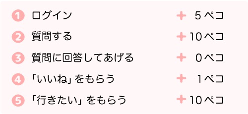 「ペコ」は、ログインや質問などアプリを使うだけで簡単に貯めることができ、30ペコから交換することが可能です。