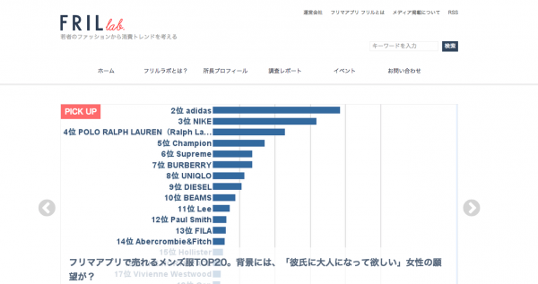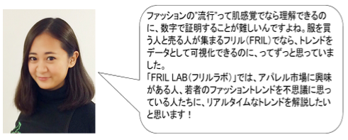ファッション特化のフリマアプリとして、「フリル(FRIL)」が持つデータやインサイトを活用し、ファッション消費行動やアパレル産業の変化などを調査・解説する場所が「FRIL lab(フリルラボ)」です。