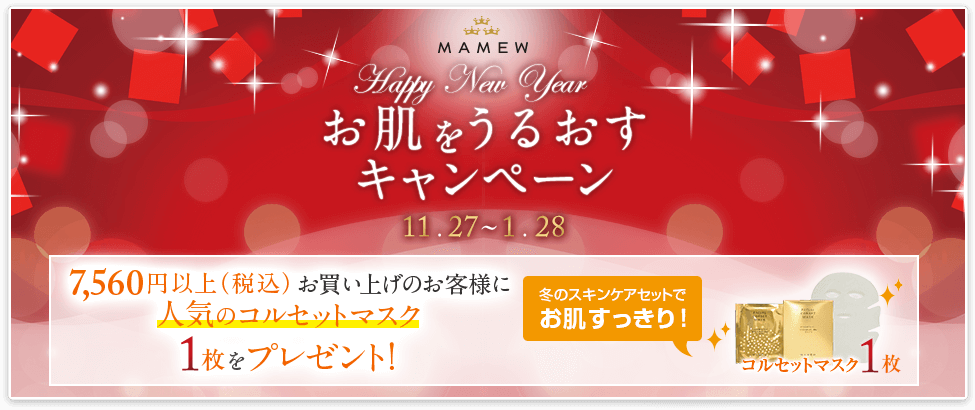 人それぞれの骨や筋肉の特徴を分析し、その人の長所を引き出すこっきん(骨筋)メイクレッスンの「MAMEW」(東京都港区:主宰 横山恵子)は、公式通販サイト(http://mamew.jp/ec/)にて、2015年11月27日(金)より『お肌をうるおすキャンペーン』を開催いたします。