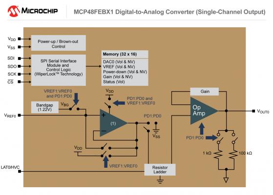 [NASDAQ:MCHP] - マイクロコントローラ、ミックスドシグナル、アナログ、Flash-IPソリューションのトッププロバイダであるMicrochip Technology Inc.(日本支社: 東京都港区浜松町、代表: 吉田洋介 以下Microchip社)は本日、D/Aコンバータ(DAC)製品を拡充するMCP48FXBXXファミリを発表しました。MCP48FEBXXファミリ6製品はEEPROMを内蔵しており、電源OFFでもDACの設定を保持できます。EEPROMを必要としない応用向けには、より低コストなMCP48FVBXXファミリを提供いたします。これらの低消費電力、1/2チャンネル、8/10/12ビット分解能、SPIシリアル インターフェイス内蔵DACは10ピンMSOPパッケージで提供します。コンシューマ、産業、車載市場における幅広い応用の例としてセットポイント/オフセット トリミング、センサ校正、計装、モータ制御等が挙げられます。