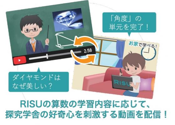 RISUとの提携により、タブレットで学習した算数の履歴に応じて好奇心を刺激する会員限定動画を送付します。