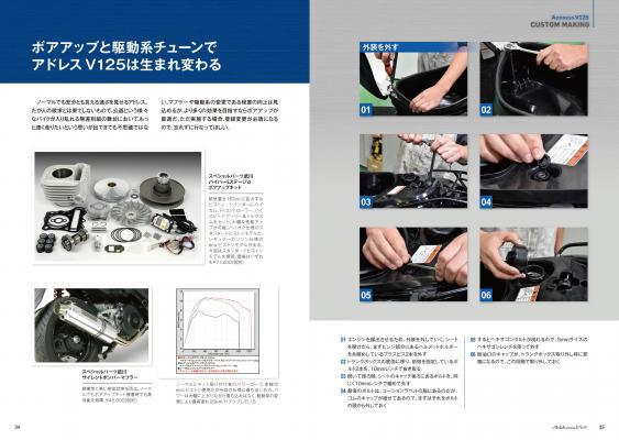 コンパクトな車体にパワフルなエンジンで、通勤の足として、またカスタムの素材として人気のアドレスV125。本誌は2010年登場のアドレスV125Sをメインに、そのメンテナンスとカスタムパーツ装着の実用記事を多数の写真を使い掲載。歴代カラーラインナップや現行車両情報も充実しています。またアドレス用パーツを大量掲載したカスタムパーツカタログもあります。アドレスV125Sに乗っているオーナーはもちろん、購入を検討している人には最適な1冊となっています。